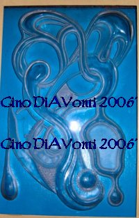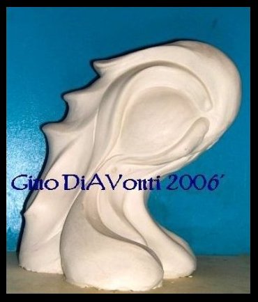 The modern acrylic sculpture to your right is a fine artwork in progress. Gino started on this piece in early July 2006', and is still working on it. He admits that the polishing of the work is taking as long as the carving itself, but since it is the effect he's after, is worth the extra time. He plans on using glass dyes of various intensities in value in the finished piece.