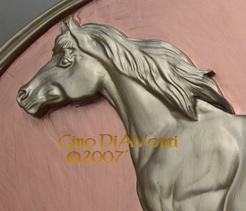 The darker bronzed horse on the medallion to your right was another color version Gino created.